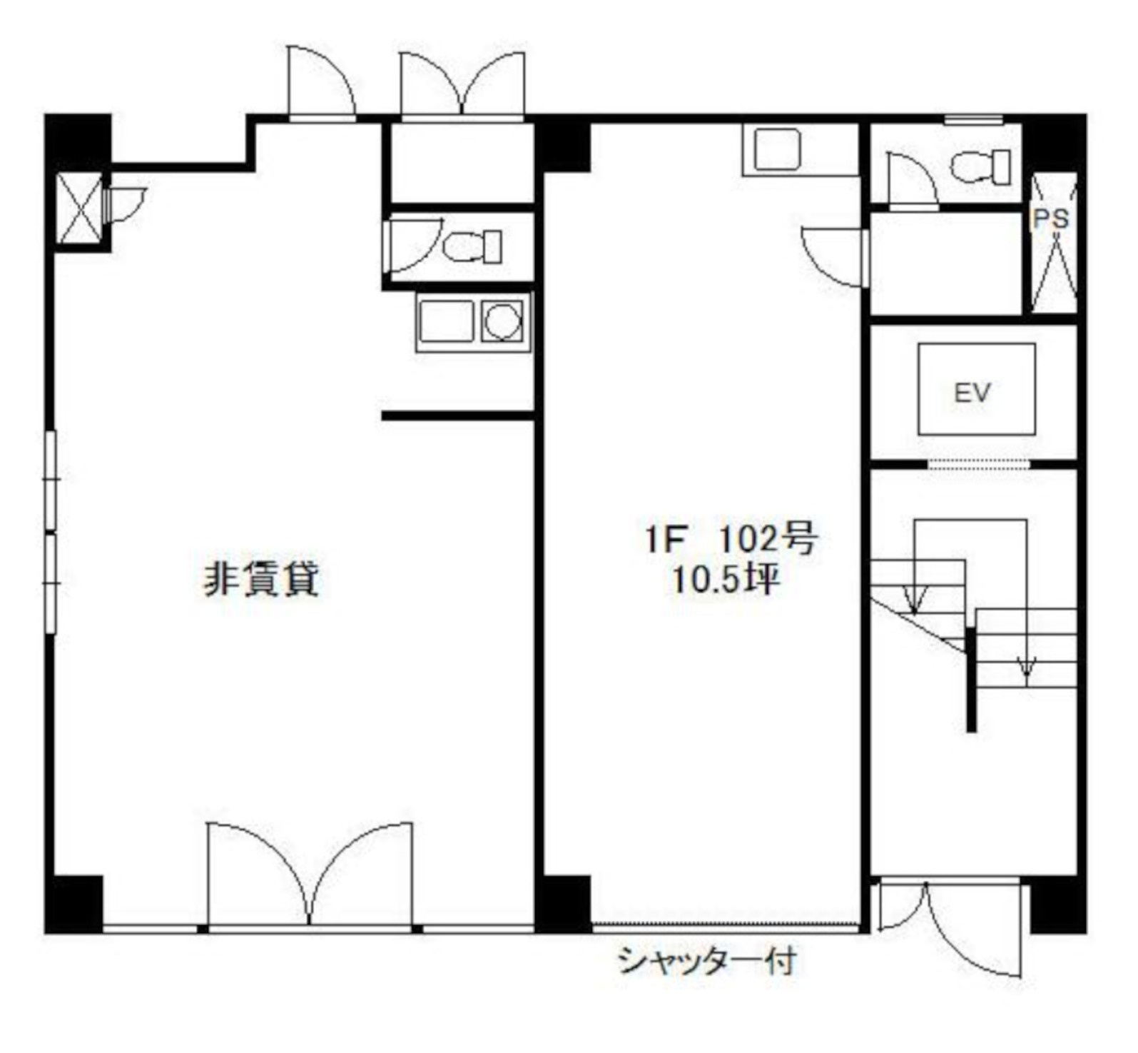 秋葉原・岩本町エリアの貸事務所「木所ビル1階」。面積34.70㎡(約10.5坪)、賃料143,000円。