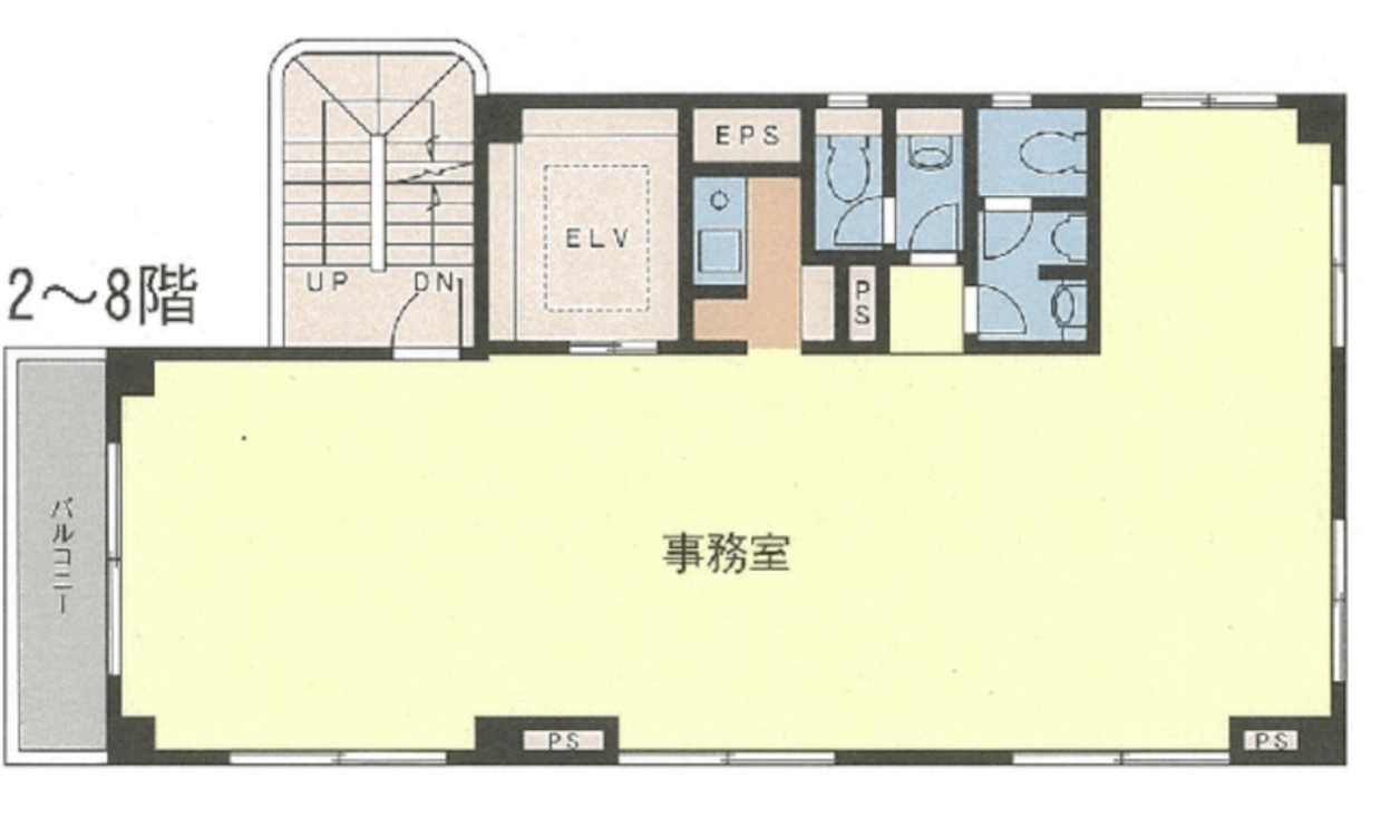 男女別トイレ、個別空調、光ファイバー、EV、給湯を完備し、天井高2450mmで開放感も◎。周辺はカフェ・飲食店・銀行が近く、来客対応や日々の業務がスムーズ。